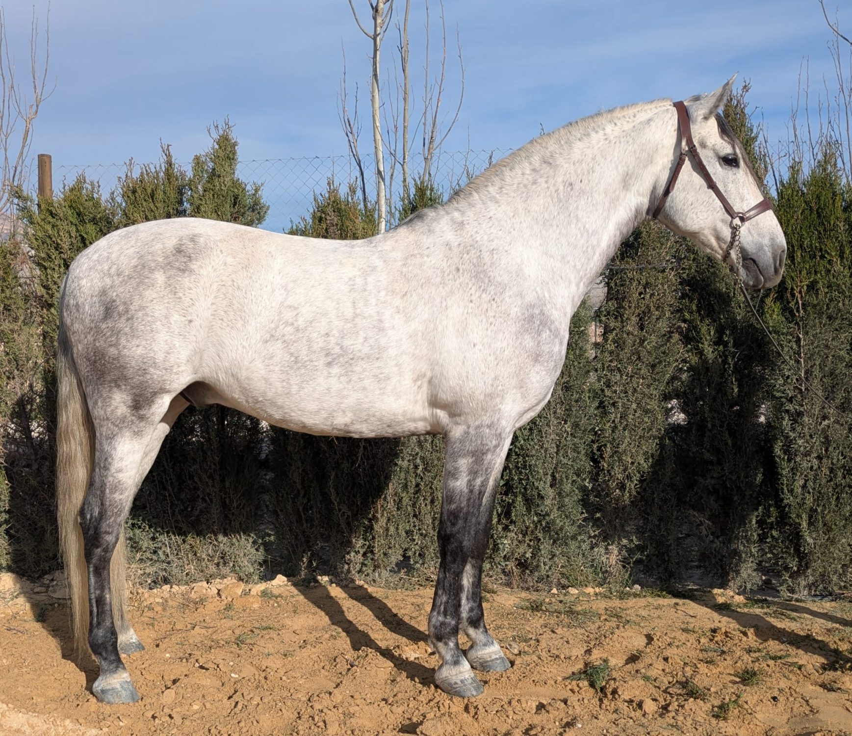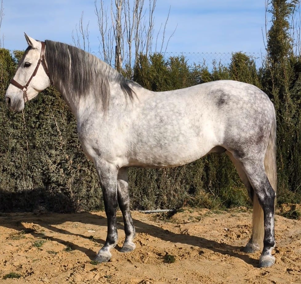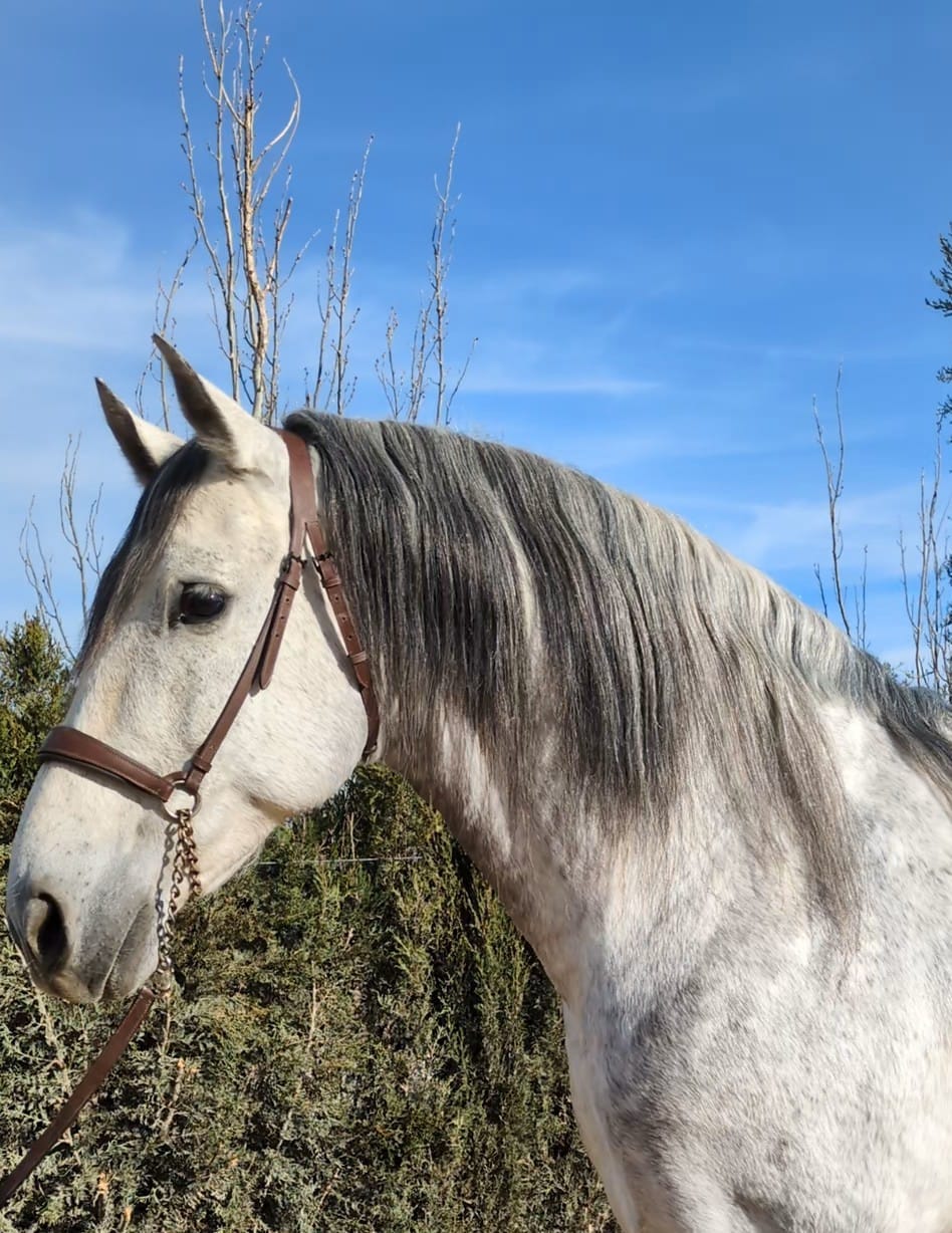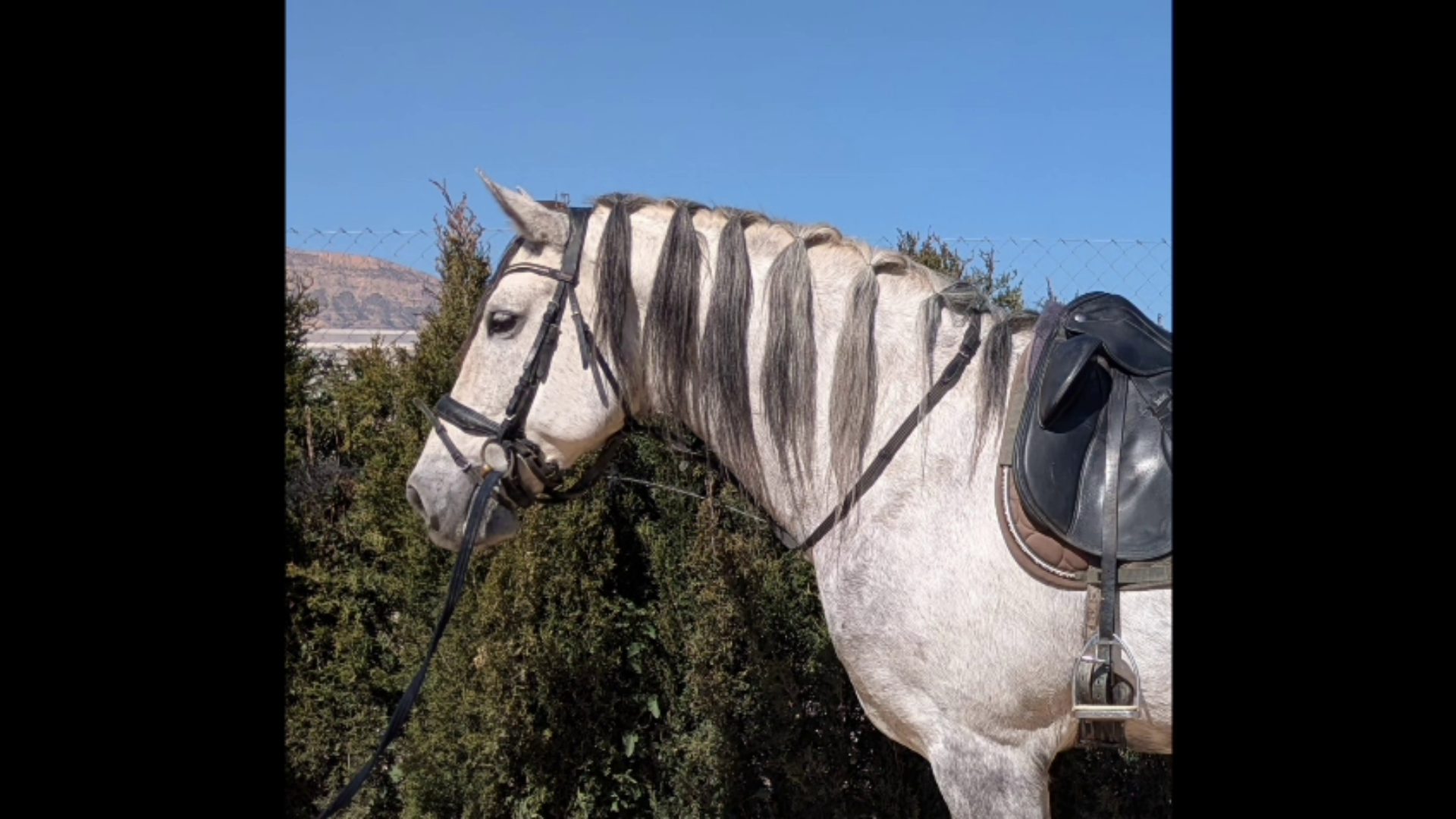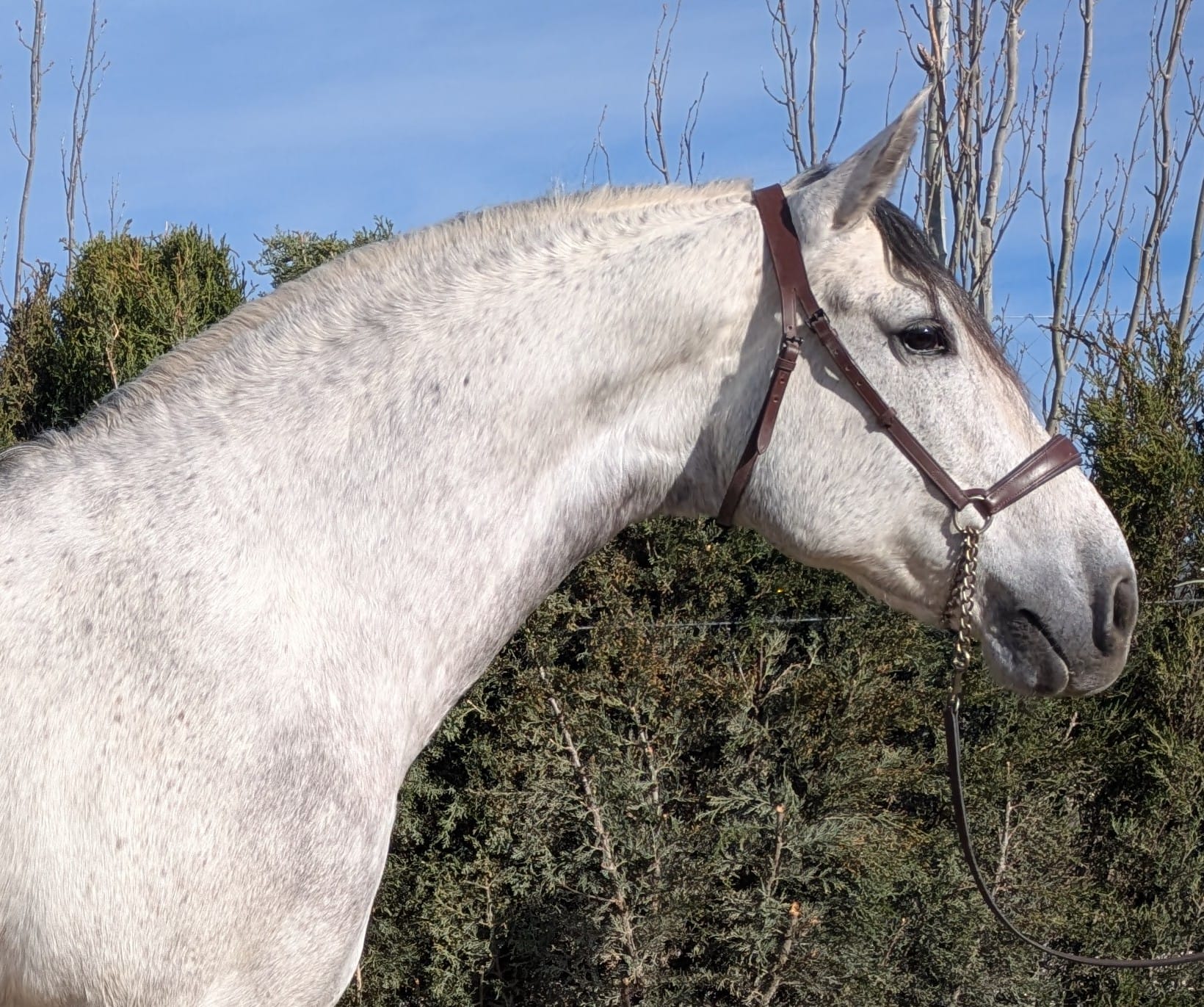 Er verfügt bereits über ein recht fortgeschrittenes Niveau: Er beherrscht alle Seitwärtsbewegungen und einfache fliegende Wechsel. Es ist ein Freizeitpferd für jemanden, der gerne ausreitet und auch ein bisschen Dressur in der Reithalle macht.